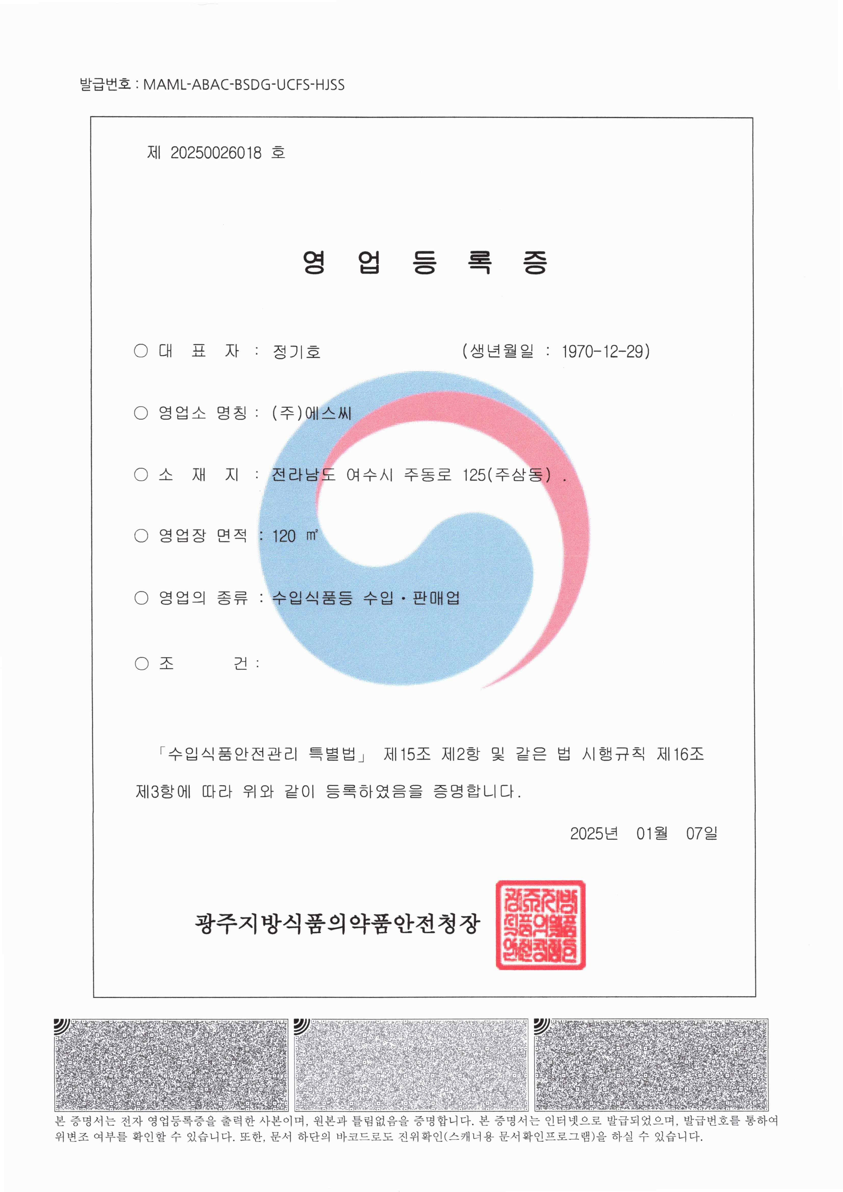 Certificate of Business Registration for Import and Sales