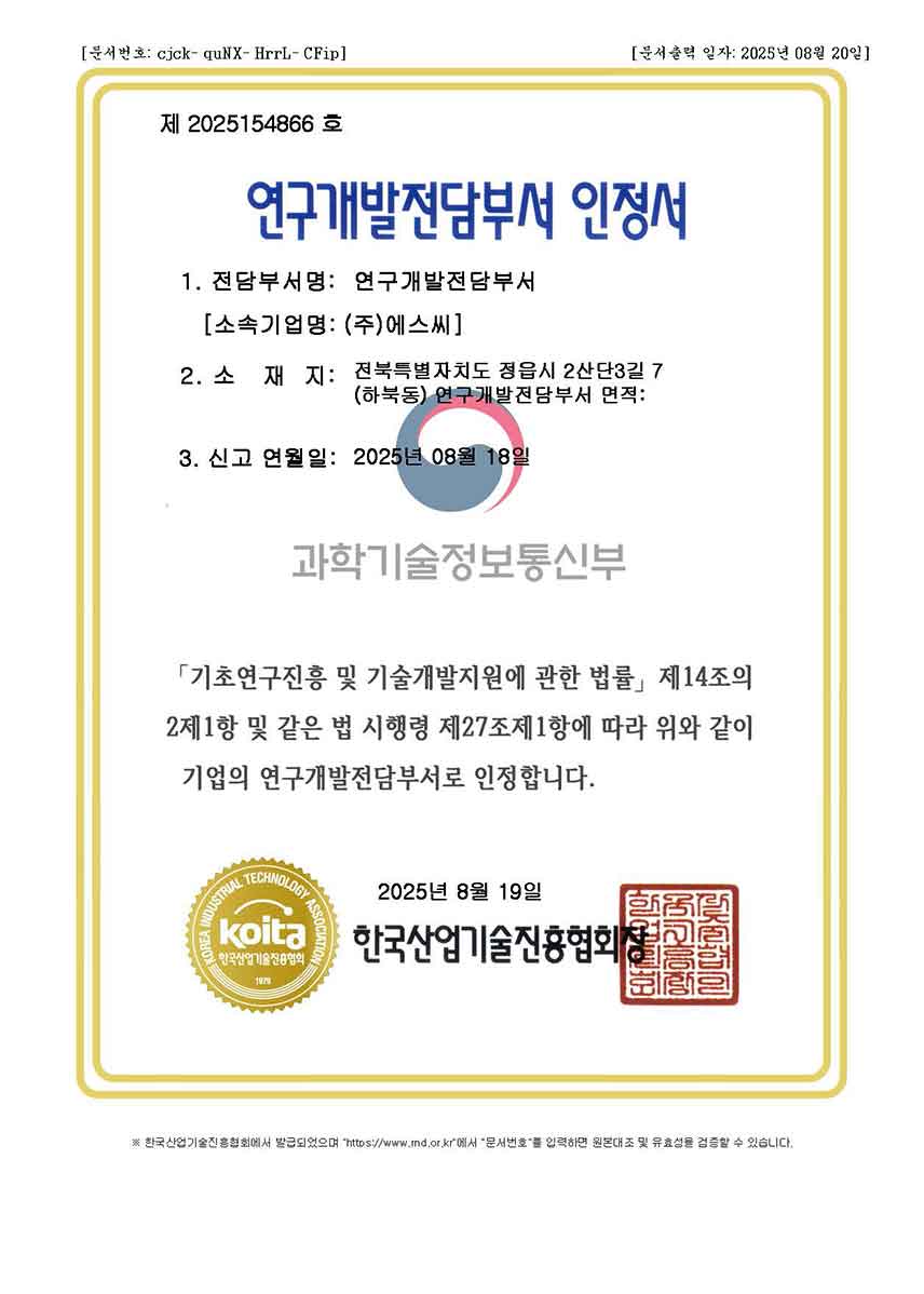 Certificate of Accreditation for R&D Department
